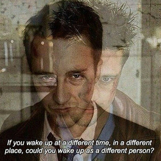 Fight Club is a story about a depressed man (the narrator)—played by Edward Norton—and a series of events that turn his mundane life upside down. Now, before we get into the story, we need to understand what kind of a man our narrator is. He is, in a sense, every single one of us. He leads an uneventful life, has a 9-5 job, wears uninteresting clothes, and buys uninteresting things he doesn't actually need because he hopes to feel complete through consumption. He is almost like a drone, a perfect slave to capitalist society. His character and scenes are mostly associated with colours like pale blues and white—uninteresting and forgettable—a nobody with a rather depressing outlook on life. He suffered from insomnia and often found himself waking up in random places without knowing how he got there. The narrator gets addicted to going to different kinds of support groups and crying with other people because this was the only way he could tire himself out enough to get some sleep. His life went on the same way for a while until he stumbled upon someone with the same addiction as him, Marla Singer (Helena Bonham Carter). He found her presence disturbing because she was just like him, an imposter who attended support group meetings as a kind of obsession. They come up with an arrangement that allows them to attend these sessions without running into each other, and Marla leaves her number with the narrator. This is when the story starts to progress faster. One day, the narrator goes on a business trip and finds himself sitting next to a man named Tyler Durden (Brad Pitt), who is the second important character in the movie. Tyler Durden is the exact opposite of our narrator. He is everything society rejects, and he is everything the narrator wants to be. An anarchist who doesn't go by the rules. He wore flashy outfits and RADIATED generic primal masculinity-something the narrator lacked due to the emasculating consumerist society he lived in. When the narrator returns home after the flight, he discovers that his apartment has been blown up and that he must find another place to stay. He then decides to call Tyler for help, and this phone call leads to the formation of a strange friendship. He moves into Tyler Durden’s dilapidated house that barely has basic necessities because this is how Tyler chooses to live, a primal existence that rejects consumerism and commercialism—the opposite of how the narrator lives. They form a club that is similar to the support groups the narrator used to be addicted to, but the difference was that this club was for men who wanted to reject the society that "emasculates them" and makes them "soft" and wished to return to primal instincts where they essentially just get together and beat the crap out of each other because this is how they expressed themselves (our typical emo middle school boy). This is where the theme of toxic masculinity is highlighted in the movie. While the narrator and Tyler live together, Tyler also forms a relationship with Marla Singer. As the story progresses, Tyler Durden creates an underground terrorist group called "Project Mayhem". An anarchist group that goes around destroying things and basically raising hell all over the city. This army of men- led by Tyler Durden, who is almost like their dictator, shed their identity and blindly follow everything Tyler says with the belief that they are fighting against capitalism, corporations, and materialism. They eventually come up with a large-scale operation to destroy credit card companies with explosives, which would cause the economy to crash and put everyone back on ground 0. When the narrator realises the actual scale of the organization, Project Mayhem, he tries to find Tyler to stop him. This is when Tyler reveals *dramatic pause* that he and the narrator are the same person DUN DUN DUNNNNNN (no trust me it's way more shocking in the movie). Tyler was the narrator’s alter ego that he formed due to psychosis caused by his insomnia, and Project Mayhem was his creation (there are MANY small details hidden in the film that hint at this, but the fun is in finding them yourself). The narrator manages to kill Tyler by shooting himself in the cheek but fails to stop the explosions from taking place. At this point, Marla Singer finds the narrator standing in an empty building with blood dripping from his face, and the two of them stand together, holding hands and looking out through the windows where the buildings come crashing down.